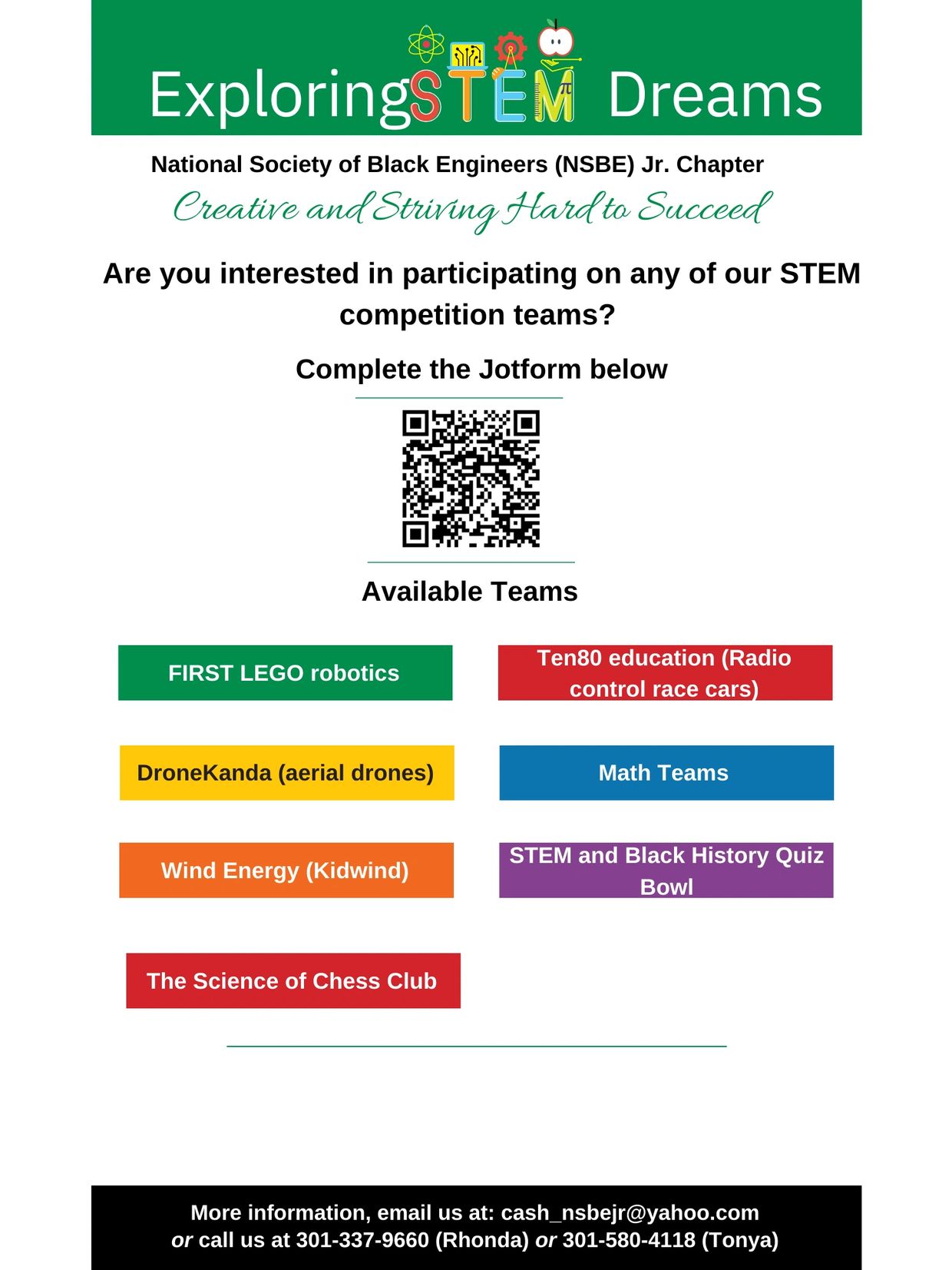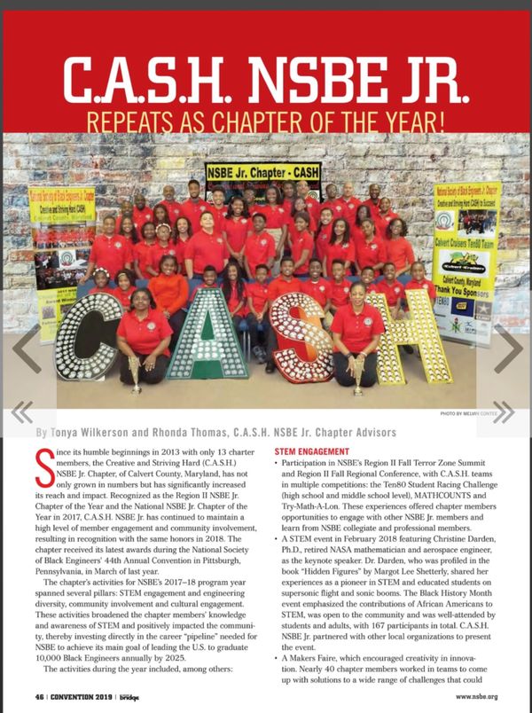 Please take a moment to learn more about us by exploring our website. We'd love to hear from you if you're interested in joining our CASH NSBE Jr. Chapter; Volunteering as a Mentor or Coach; being a Guest Speaker; or becoming a Sponsor!